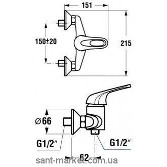 Смеситель для душа настенный однорычажный Jika Olymp H31617004000