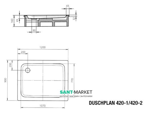 Душевой поддон стальной эмалированный прямоугольный Kaldewei Duschplan 120х90х6.5 белый 432000010001