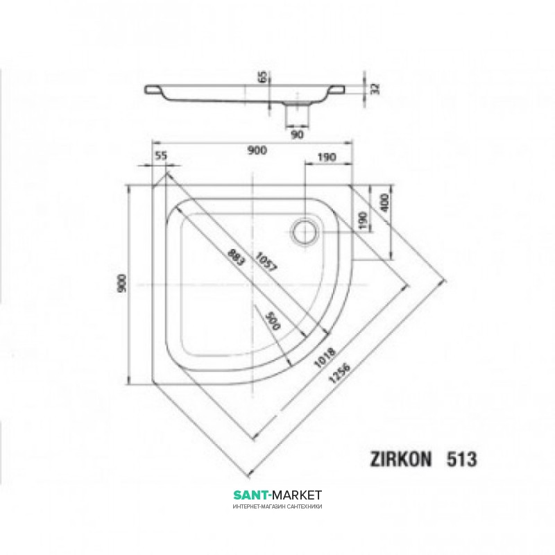 Душевой поддон стальной эмалированный четверть круга Kaldewei Zirkon 90x90х6.5 белый 452200010001
