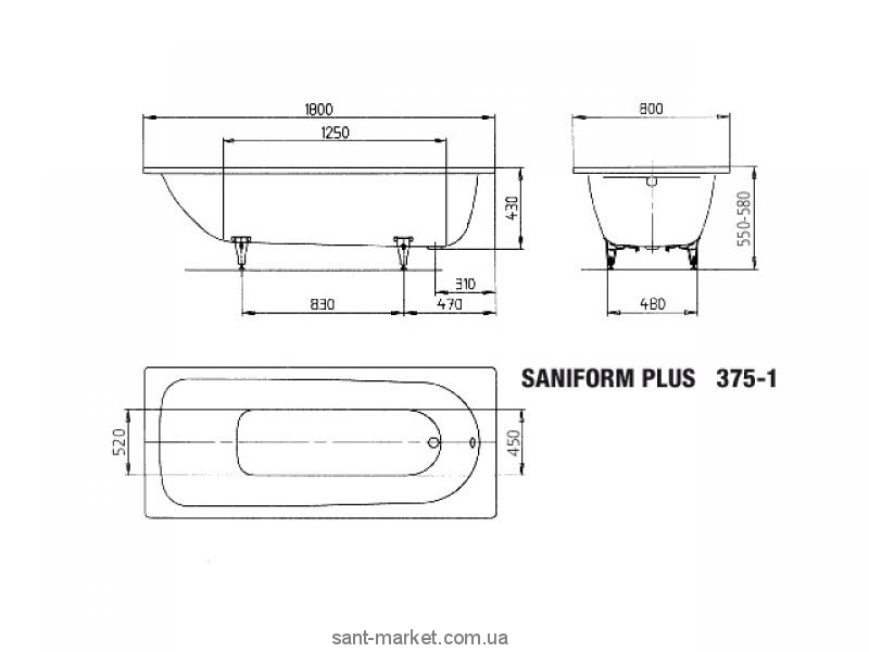Ванна стальная встраиваемая Kaldewei Saniform Plus Standard прямоугольная 180x80 375-1