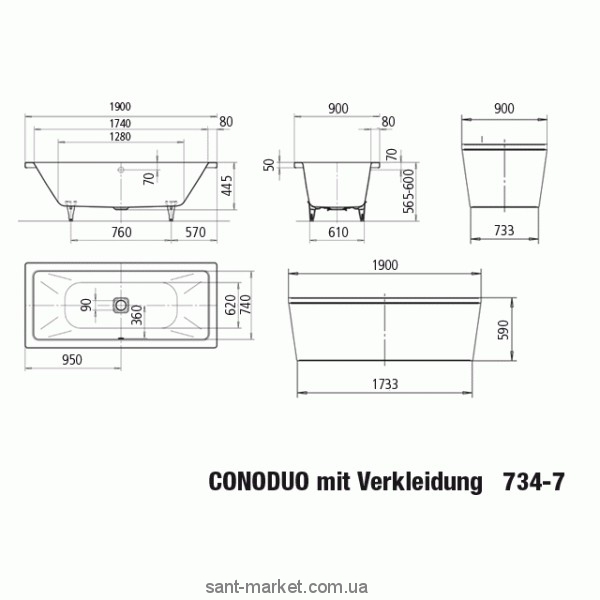 Ванна стальная отдельностоящая Kaldewei Conoduo 190x90 с облицовочными панелями mod 734-7 235248050001