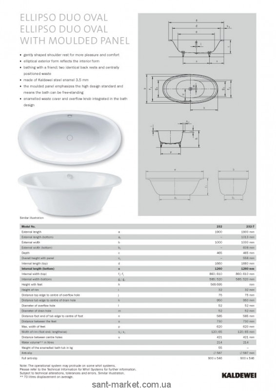 Эллипсообразная внутренняя форма Kaldewei Ellipso Duo Oval 190x100 232-1 создает чувство уюта и защищенности. Скругленная опора для спины и ровные боковые стенки формируют обширное внутреннее пространство, позволяя с комфортом принимать ванну как в одиночку, так и вдвоем.