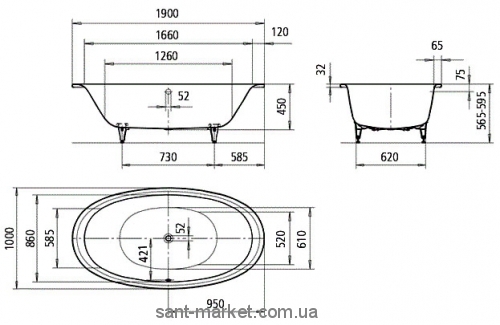 Ванна стальная отдельностоящая Kaldewei Ellipso Duo Oval 190x100 mod 232-7 286248050001