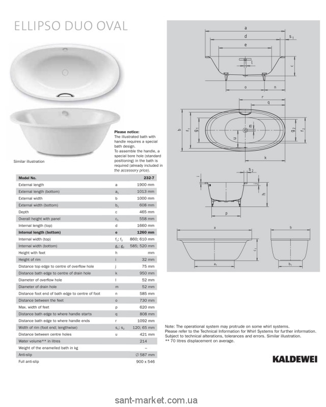 Ванна Kaldewei Ellipso Duo Oval 190x100 с панелями - замечательная модель для Вашей ванной комнаты. Изделие непременно станет эффектным украшением интерьера и будет радовать Вас и Ваших близких. Модель выполнена из высококачественного материала, который придает изделию особую привлекательность. Её овальная форма, делает ванну оазисом тепла и комфорта. Ванна превосходно будет выглядеть установленной в центре комнаты, как самостоятельно, так и вмонтированным в подиум. Безопасное покрытие Antislip не допустит скольжения во время принятия водных процедур и обеспечит Вашу безопасность. Объем ванны - 214 л, глубина - 45 см, высота - 48 см, длина - 190 см, ширина - 100 см. Такая вместительная ванна позволяет себя чувствовать удобно как одному так двоим людям. Погрузившись в ванну Вы будете чувствовать себя комфортно и защищено!