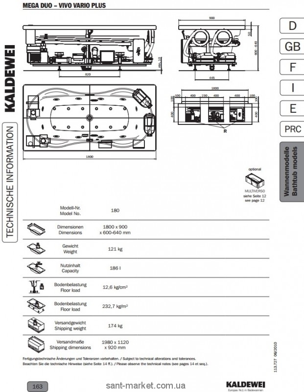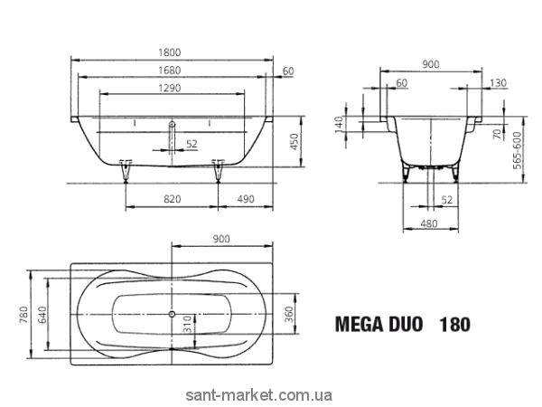 Ванна стальная встраиваемая Kaldewei Mega Duo 180х90 белая mod 180 223400010001