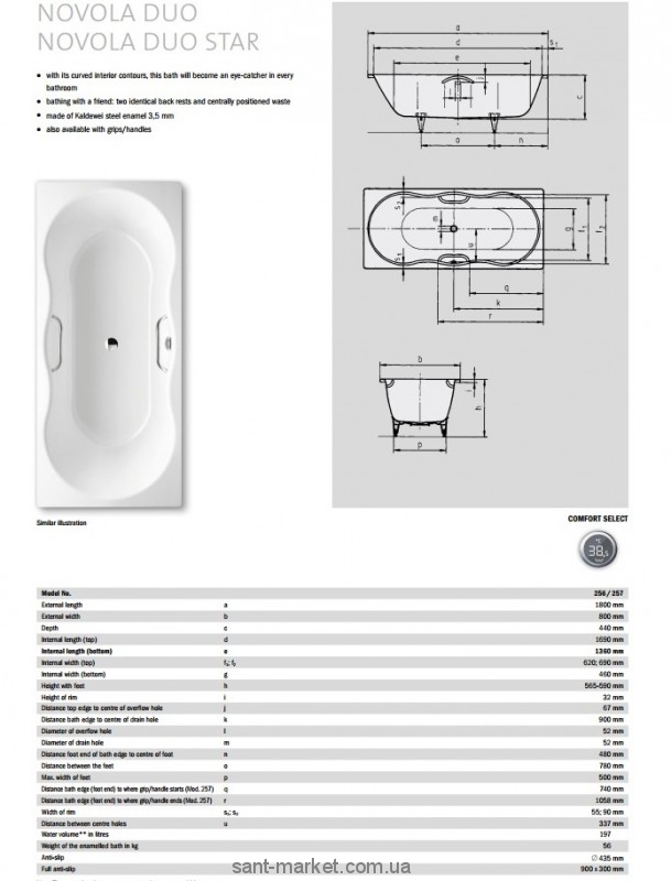 Преимущества ванны Kaldewei Novola Duo 180x80: