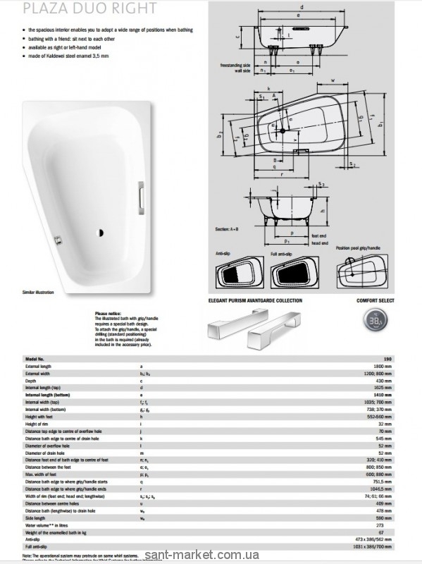 Правосторонняя ванна KALDEWEI PLAZA DUO 180X120 RIGHT обладает удобной формой и замечательной внешностью. Модель имеет плавные изгибы внутреннего пространства и размеры, которые позволяют принимать ванну вдвоем. Оригинальная форма KALDEWEI PLAZA DUO 180X120 RIGHT делает ее превосходным дополнением для помещений с преобладанием строгих прямоугольных форм. Высокое качество материала, современный дизайн, нежный белый цвет – все это несомненные преимущества изделия. Длина ванны - 180 см, ширина - 120 см, глубина - 43 см, высота - 56 см. Благодаря KALDEWEI PLAZA DUO 180X120 RIGHT Вы сможете насладиться полноценным отдыхом в любое время дня и ночи. Модель соответствует всем современным стандартам качества и будет служить вам долгие годы!