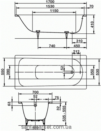 Ванна стальная Kaldewei Saniform Plus прямоугольная 170x70 111800013001