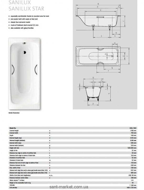 Ванна стальная Kaldewei Sanilux Star прямоугольная 170x75 бeлая mod 343 113300010001