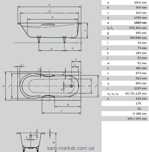 Ванна стальная Kaldewei Aquamarin Star 190x90 mod 285 240300010001 это усовершенствованная модель ванны Aquamarin. Слив и перелив находятся в узкой части ванны.