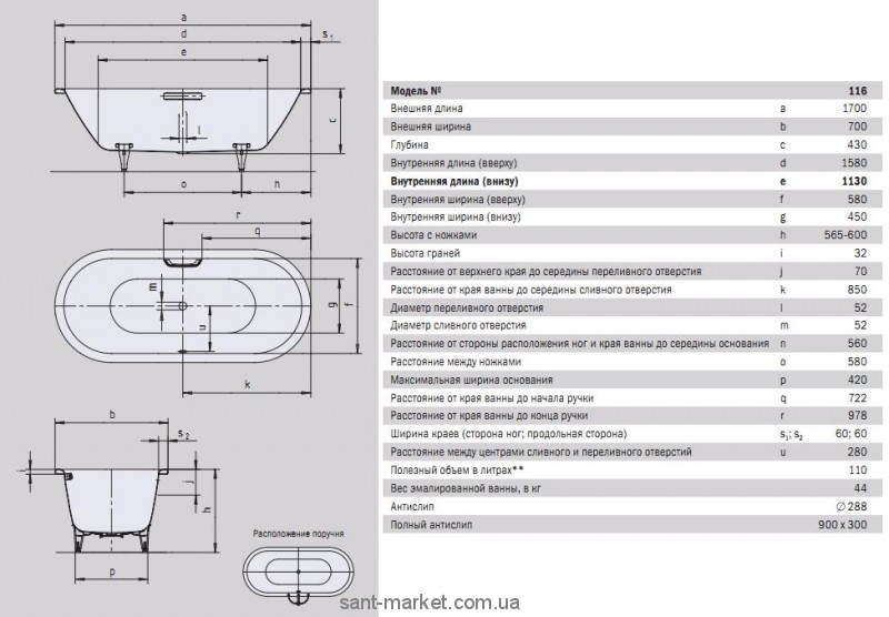 Ванна стальная отдельностоящая Kaldewei Classic Duo Oval 170x70 116 292600010001