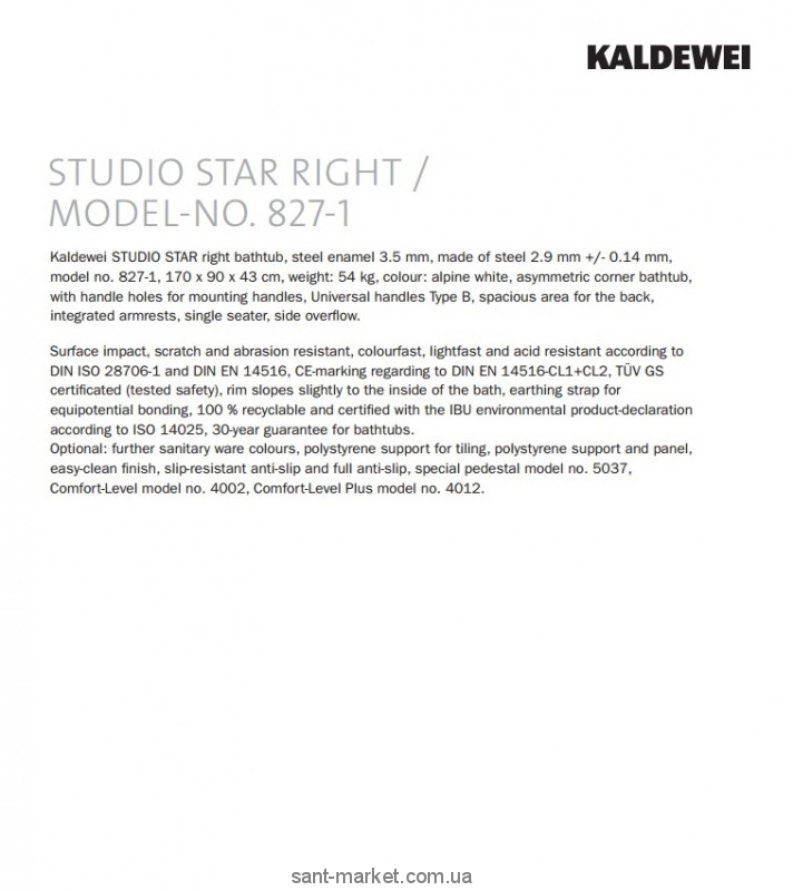 Коллекция ассиметричных стальных ванн Studio Star хорошо сочетается с комфортабельно сделанным внутренним дизайном. Ванна стальная Kaldewei Studio Star 170x90 правая mod 827-1 222300010001 широкая стенка под спину расположена под удобным углом наклона, подлокотники позволят полностью расслабить даже мышцы рук. Красивые хромированные ручки помогут легко подняться с ванны или поменять положение. Все ванны имеют гладкую белоснежную поверхность, а толщина запатентованного материала сталь-эмаль составляет 3,5мм.