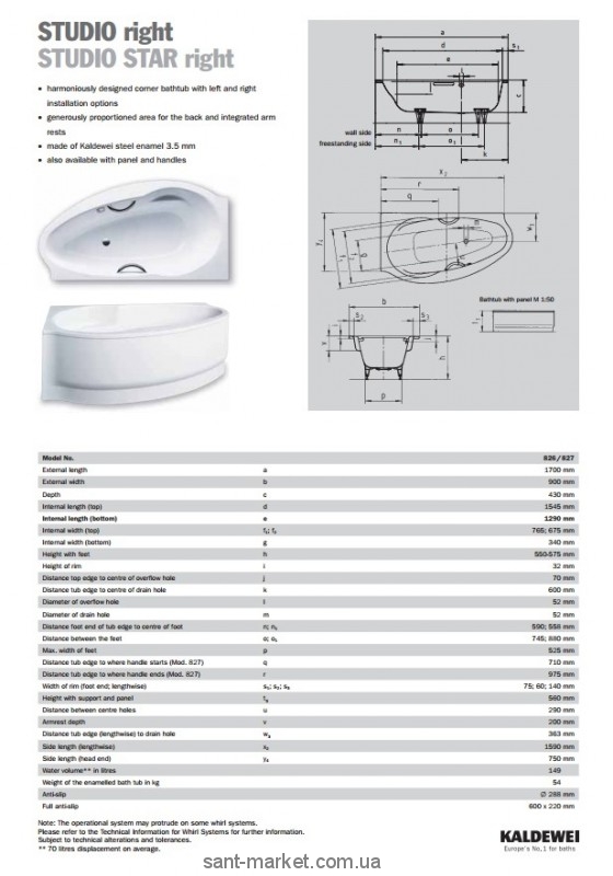 Ванна стальная угловая Kaldewei Studio Star асимметричная 170x90 правая mod 827-1 222300010001