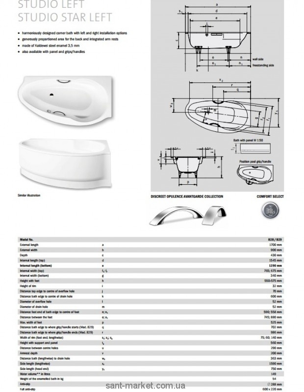 Ванна стальная угловая Kaldewei Studio Star асимметричная 170x90 левосторонняя mod 828-2 2228480430011
