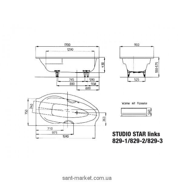 Ванна стальная угловая Kaldewei Studio Star асимметричная 170x90 левосторонняя mod 829-2 222948043001