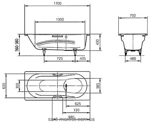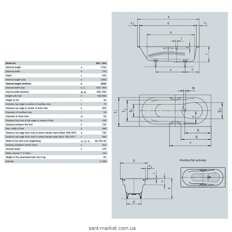 Ванна стальная встраиваемая Kaldewei Vaio Set Star прямоугольная 170x75 mod 955 233500010001