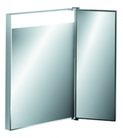 Дополнительно Состоит из двух частей (80х60 и 80х30), маленькое зеркало расположено справа от основного и поворачивается вокруг оси крепления (глубина маленького зеркала 3,2 см). Лампа раположена над основным зеркалом и закреплена на раме.