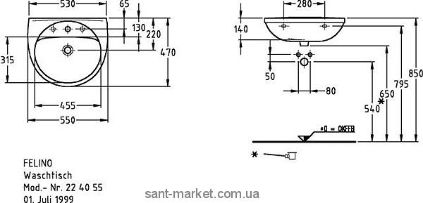 Раковина Keramag Felino 224055 может комбинироваться с полупьедесталом или пьедесталом из той же серии санфаянса (в указанную стоимость не входят). Также раковина Keramag Felino может иметь специальное покрытие Keratect, защищающее от загрязнений и надолго сохраняющее первоначальную яркость цвета. Гарантия на изделия с покрытием составляет 30 лет. Сифон для полукруглой раковины 224055 заказывается дополнительно.