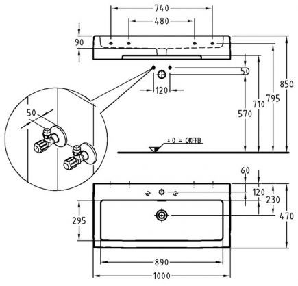 Раковина Keramag Joop! 121300 100 x 47 см (Германия); комбинируется с подстольем, столешницей или декоративными элементами.