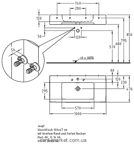 Раковина для ванной подвесная умывальник-столешница Keramag коллекция Joop белая 121400