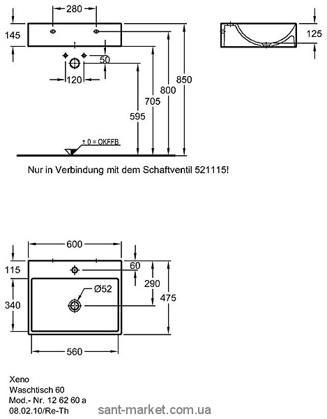 Keramag Xeno 126260 - умывальник. Установка - подвесная. Форма умывальника - прямоугольная. Материал: санфаянс. Количество отверстий под смеситель: 1