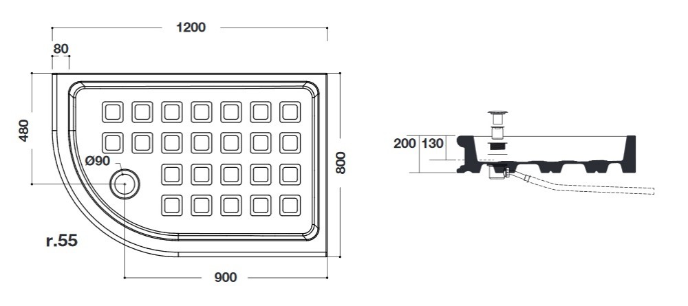 Керамический душевой поддон Kerasan Retro угловой левосторонний 80x120 см