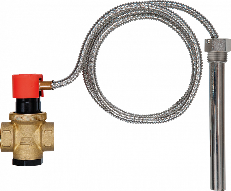 Клапан температурной защиты котла ТАС служит для защиты от перегрева твердотопливных котлов, а также двухтопливных котлов, работающих, в том числе, на природном газе. твердотопливные, работающие как в закрытых, так и в открытых отопительных установках.