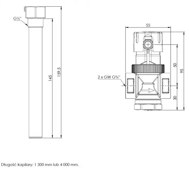 Клапан Afriso TAS для защиты твердотопливных котлов от перегрева G¾'' капилляр 1,3 м 4241500