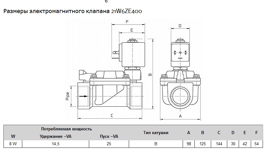 Клапан электромагнитный ODE НО 1½'' Рвх-Рвых=0,2-10ат Тмакс=140°С 21W6ZE (V) 400