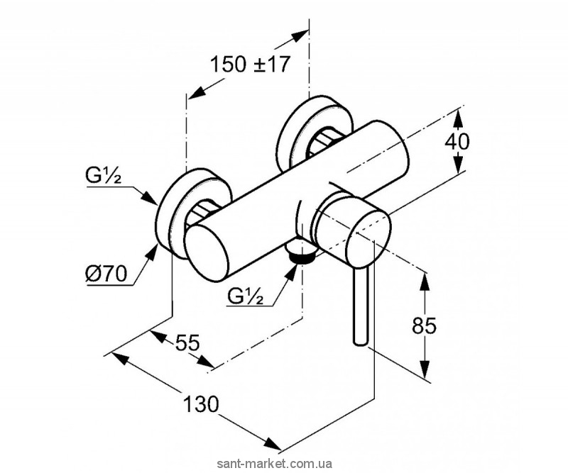 Смеситель для душа настенный однорычажный Kludi коллекци Bozz хром 388310576