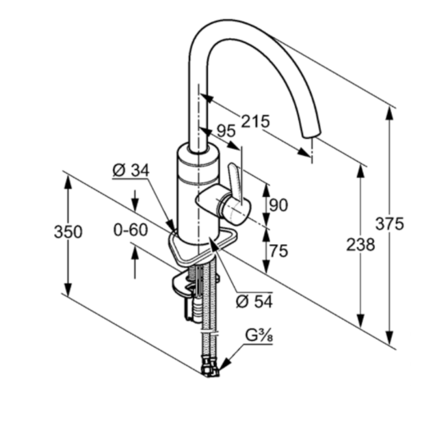- гибкий подвод воды G 3/8