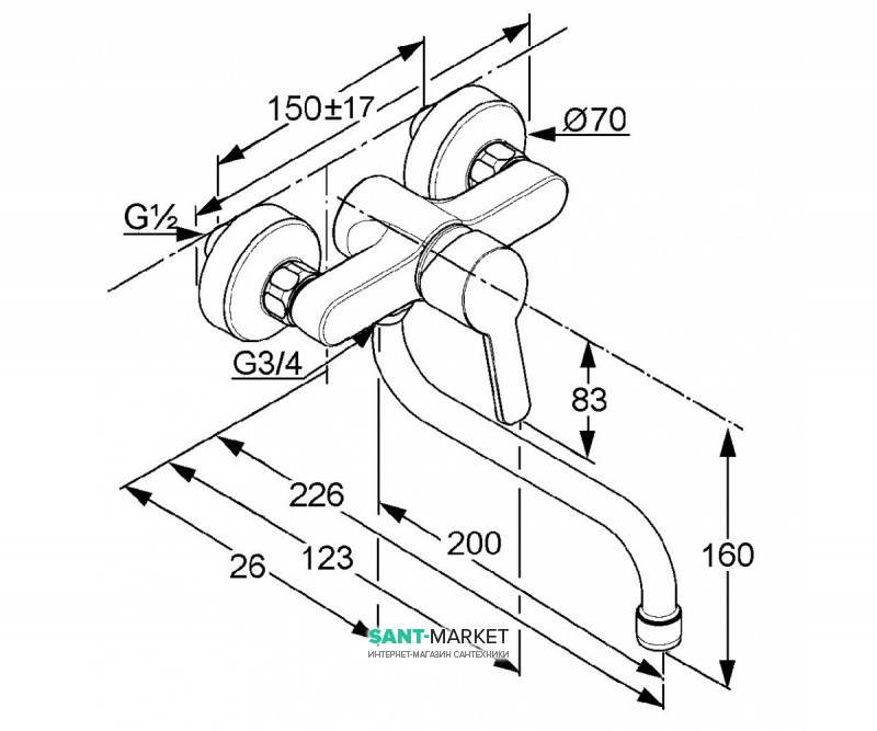 Кран монтируется на стену. Система быстрого монтажа позволяет сократить время установки изделия и значительно ее упростить.