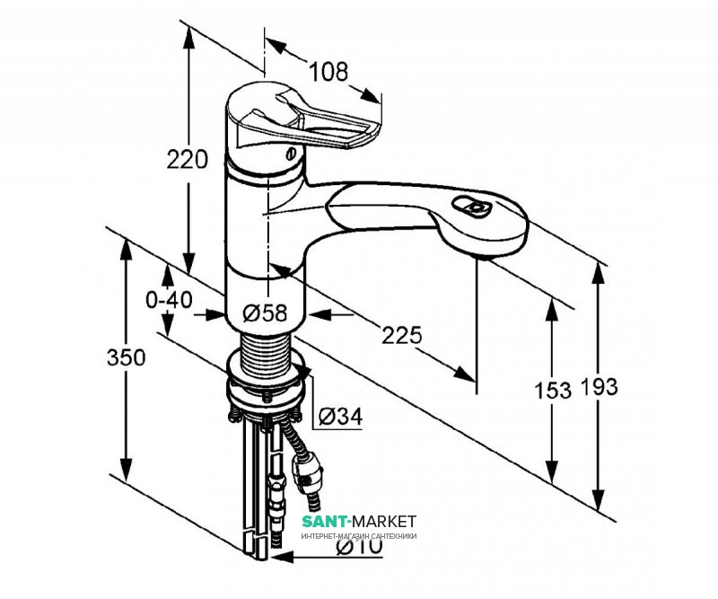 При монтаже используется жесткая подводка 10 мм. Установка производится на одно отверствие.