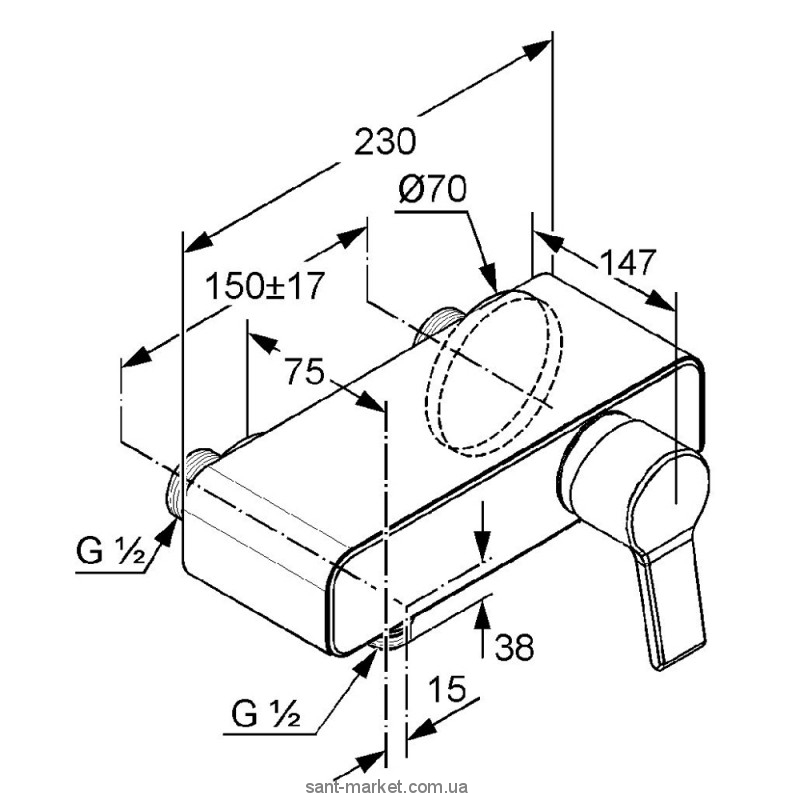 Смеситель для душа настенный однорычажный Kludi коллекция O-Cean хром 389700575