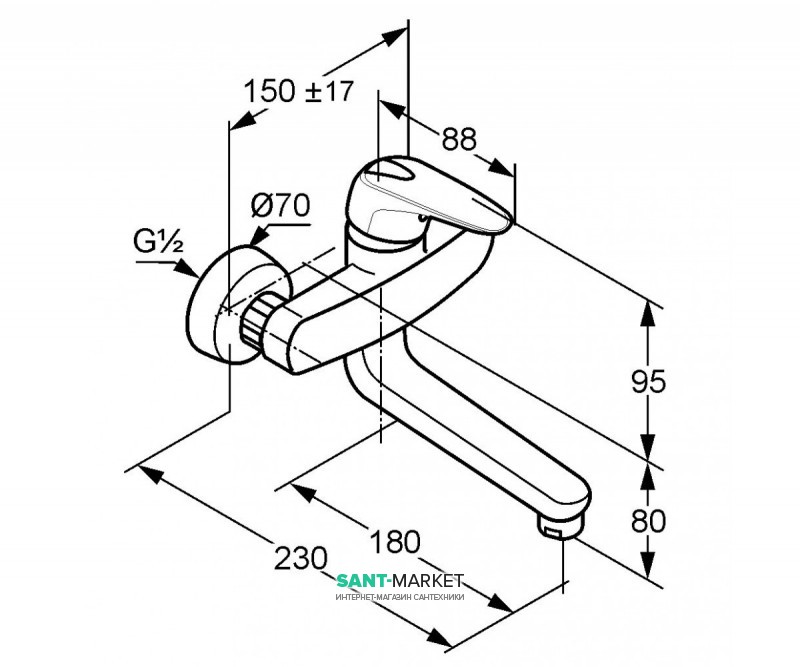 Смеситель для кухни 338820575 монтируется на стену на два отверствия.