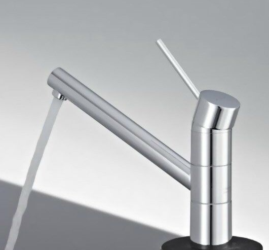 Кран для кухни Клуди 339300575 укомплектован достаточно длинным изливом, который расположен не параллельно мойки, а под углом. Излив имеет цилиндрическую форму, радиус вращения 360 градусов.