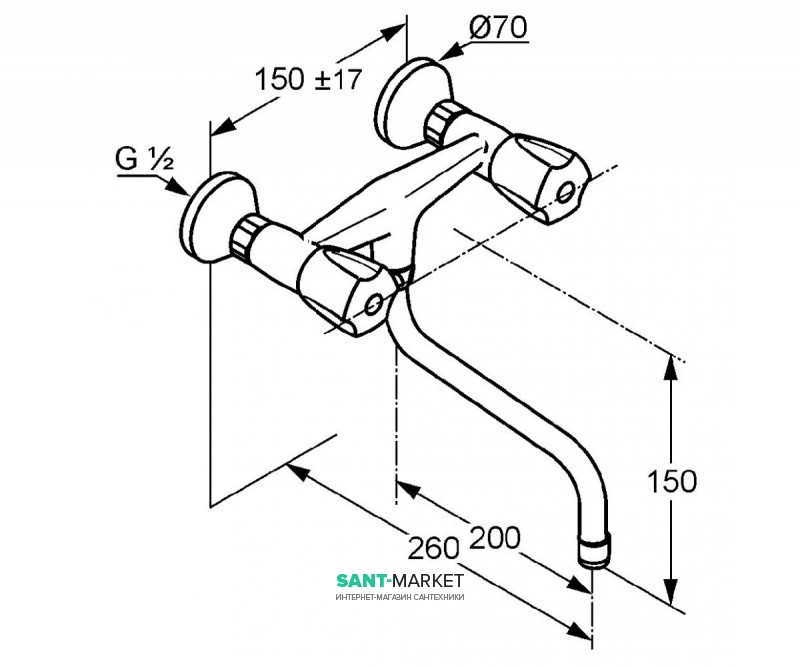 Смеситель для кухни Kludi Standard настенный двухвентильный 310530515