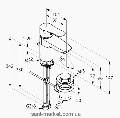 Смеситель для раковины однорычажный с донным клапаном Kludi коллекция Tercio XL хром 384840575