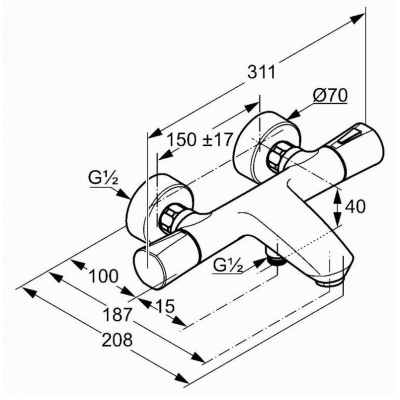 Смеситель с термостатом двухвентильный для ванны Kludi коллекция Zenta хром 351010538