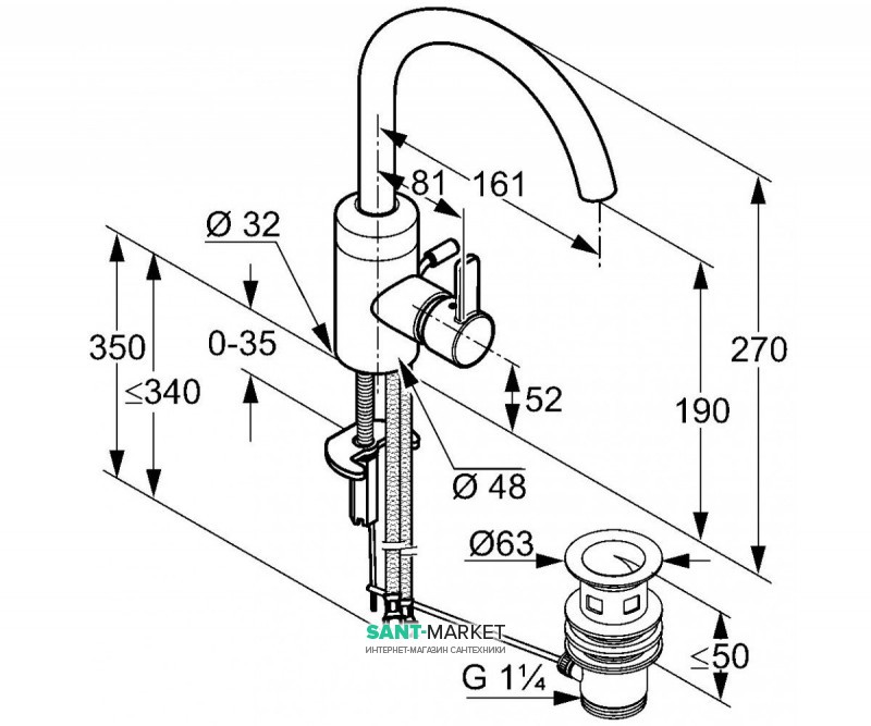 Смеситель для раковины однорычажный с донным клапаном высокий Kludi коллекция Zenta хром 382550575