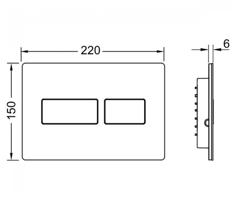 Эта прочная панель смыва имеет размер 220 x 150 миллиметров и предлагается из нержавеющей стали, с покрытием против отпечатков пальцев или без него. Она также предлагается в белом матовом или глянцевом варианте, либо в цвете хром глянцевый.