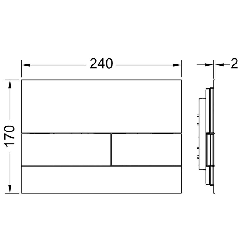 Панель смыва для смывных бачков TECE, фронтальная или верхняя установка. Сверхплоская металлическая панель смыва с двумя установленными на пружинах клавишами кулисного типа. В комплект поставки входят толкатели, крепежные элементы и инструмент для монтажа/демонтажа. Совместима с контейнером для гигиенических таблеток.