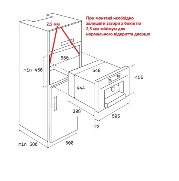 - ВАЖНО! При монтаже необходимо оставлять зазоры по бокам, по 2,5 мм минимум, для нормального открытия дверцы