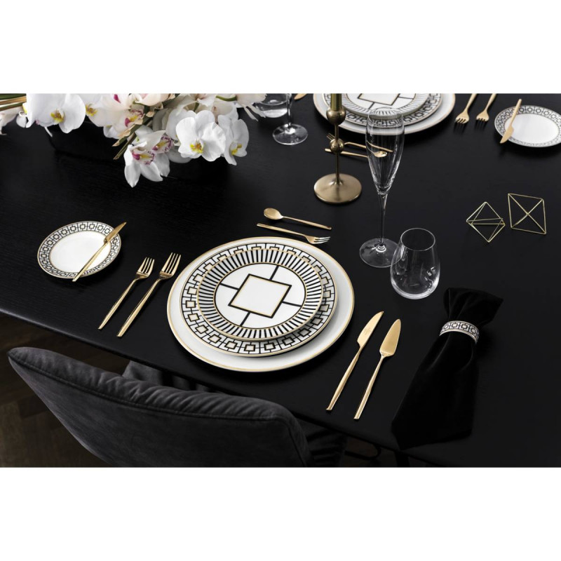 Подарочная коллекция MetroChic Gifts - особенный набор от Villeroy & Boch. Каждый предмет особо прочного сервиза из костяного фарфора декорирован в белом, черном и золотом цветах с геометрическим узором. Подарочный набор MetroChic Gifts в стиле арт-деко - отличное дополнение к посуде MetroChic, если вы хотите удивить своих гостей уникальной обстановкой особого случая. И плюс ко всему, предметы коллекции великолепны в качестве подарков. Создайте роскошный интерьер с кольцом для салфеток из коллекции Villeroy & Boch Signature MertoChic Gifts.