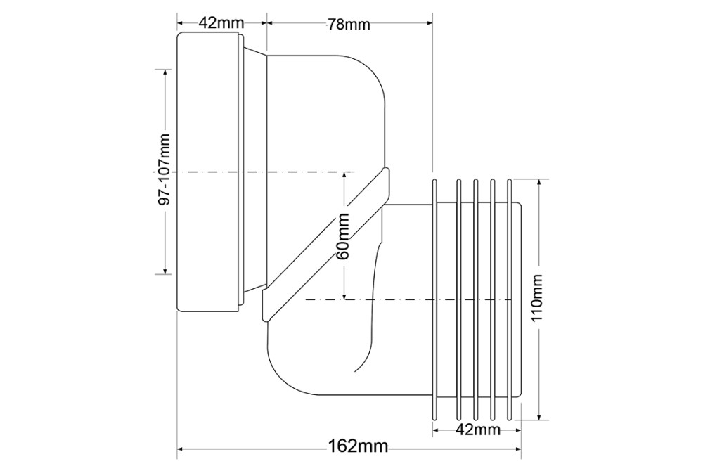 Колено-подключение для унитаза McAlpine со смещенным центром 60 мм с уплотнителем полипропилен белый WCLO-6