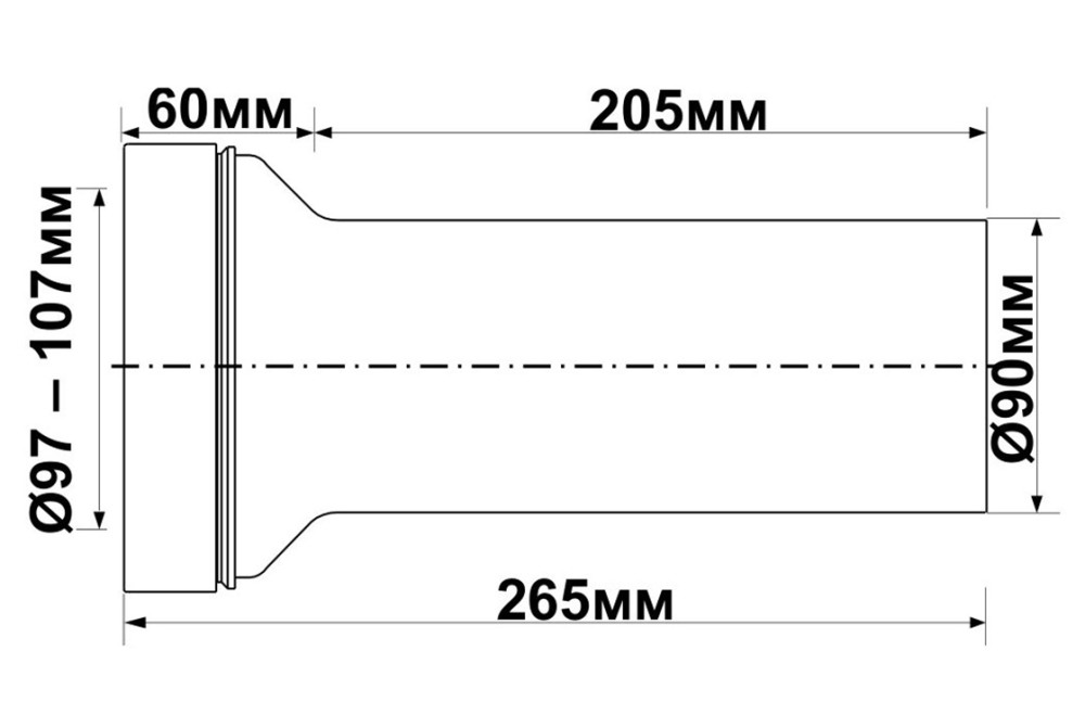 Колено-подключение для унитаза McAlpine L-265 мм эластичное простое с уплотнителем полипропилен
