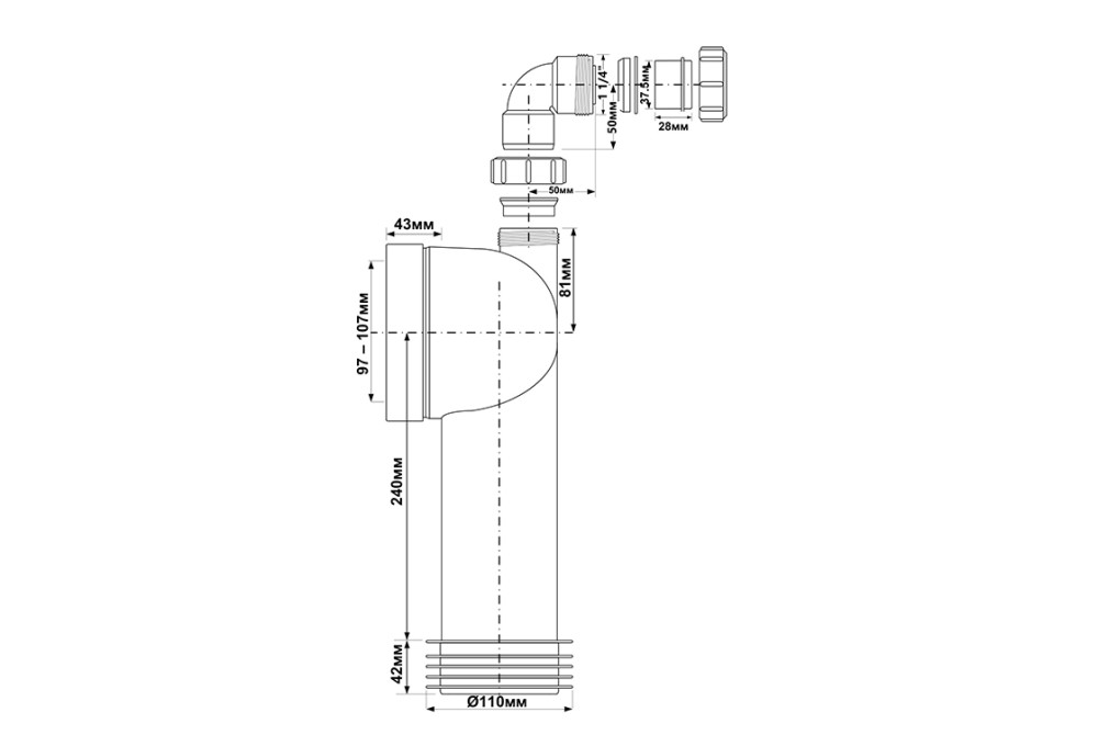 Колено-подключение для унитаза McAlpine под углом 90° с отводом 40 мм полипропилен белый WC-CON8D