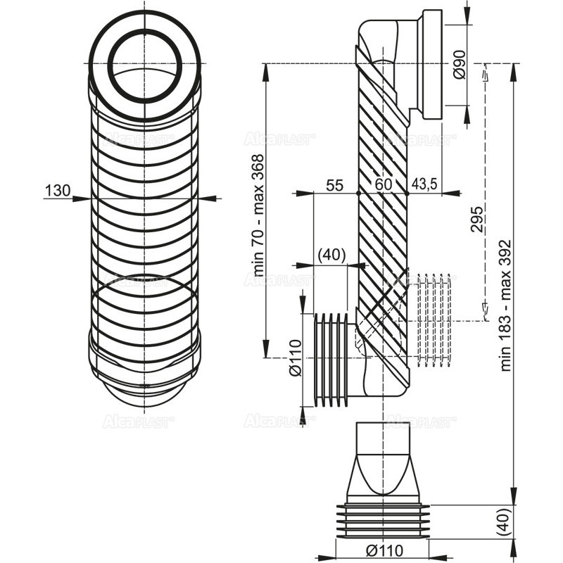 Колено стока для унитаза AlcaPlast 90/110 Slim