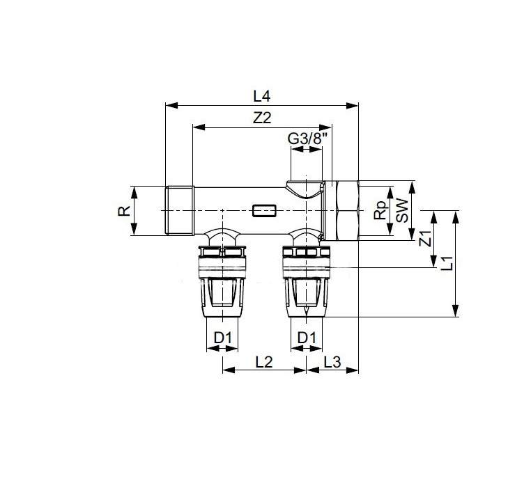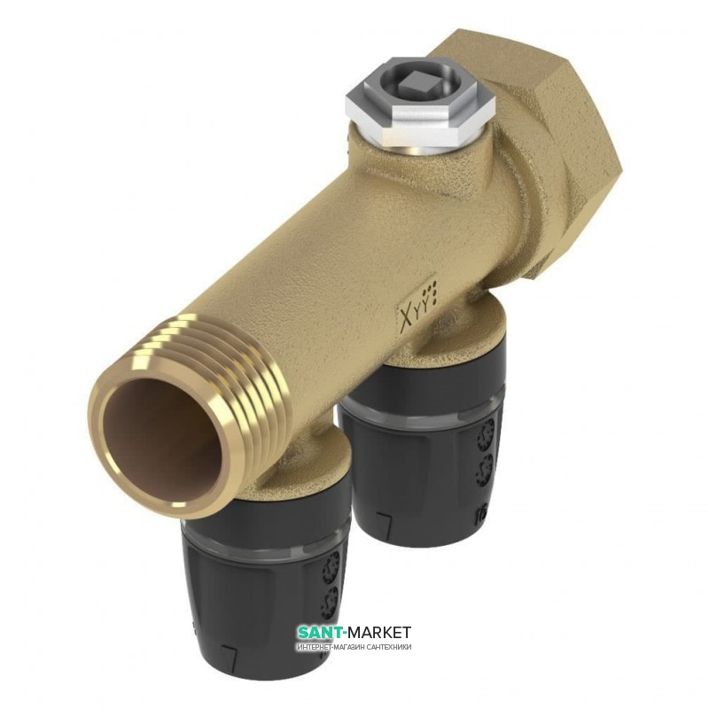 - Корпус с внутренне-наружной резьбой с присоединением 3/4 дюйма. Подключение возможно с любой стороны. Отдельные гребёнки могут объединяться между собой, что позволяет подстроиться под систему с любым количеством контуров.