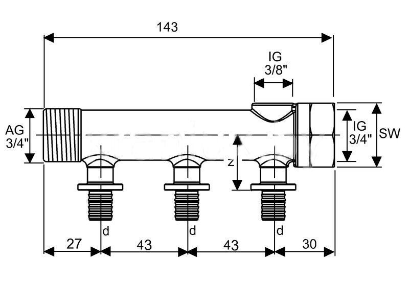 Коллектор 3/4 на 3 контура TECE TECEflex под запрессовку d 16 мм латунь 712008